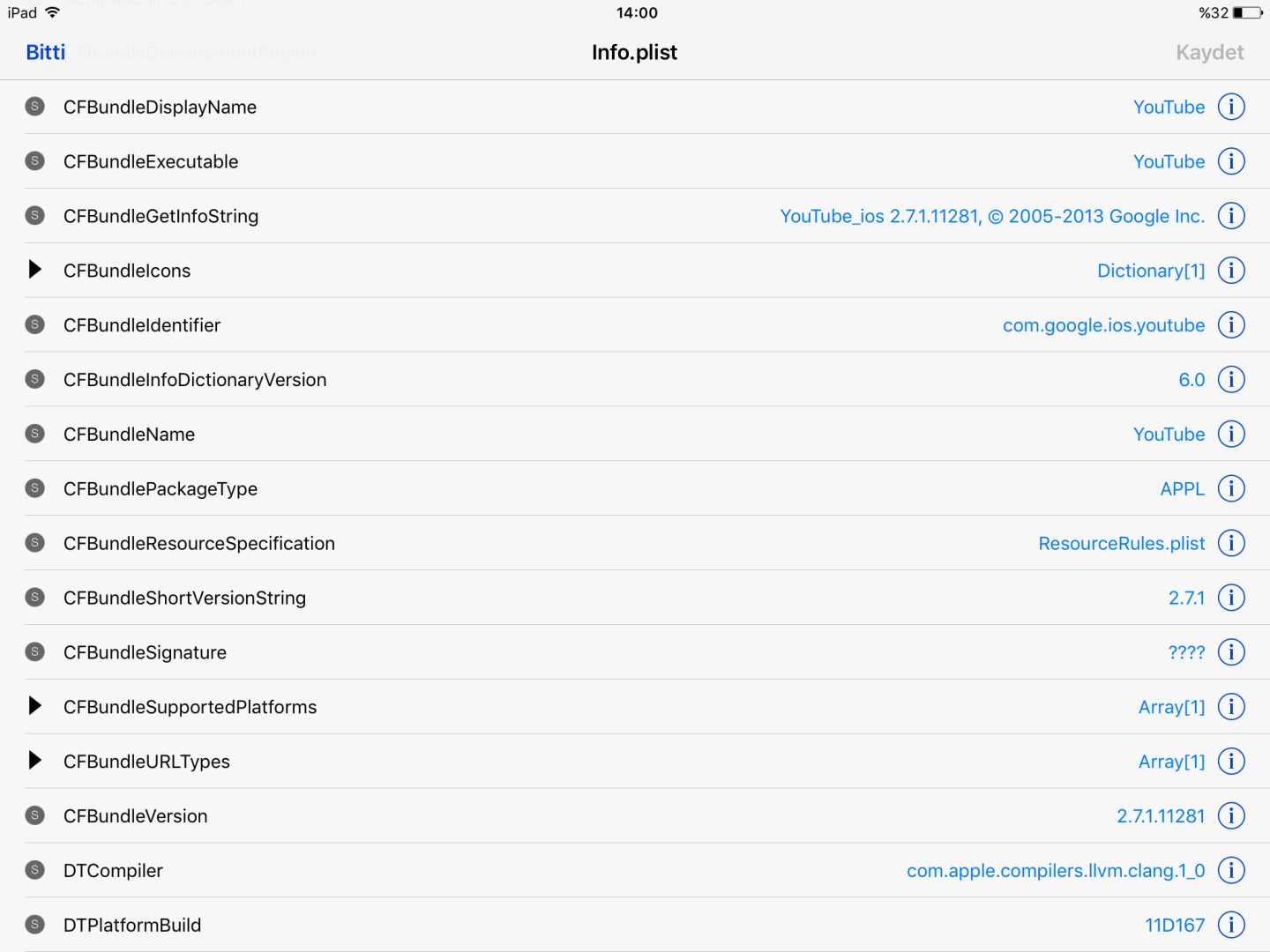 Adım 9: YouTube klasörüne giriniz ve YouTube.app tıklayarak YouTube sistemine gireceksiniz aşağıda Info.plist adındaki dosyaya tıklayıp düzenleye basınız.