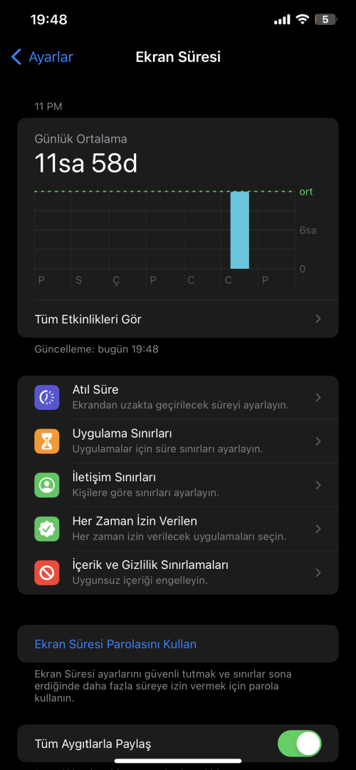 3-) Paylaş --> iPhone and battery information