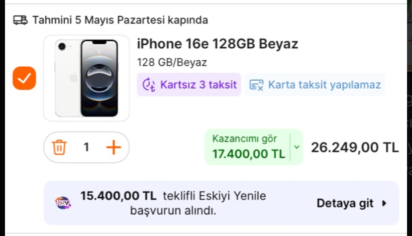 Merhaba gençler, elimde iPhone 11 128 GB modeli var. Pil %75 seviyesinde. Bir günü rahat çıkaramıyor, yoğun kullanıyorum ve telefonumda genelde oyun oynarım. Ekran 60 Hz olacak yine o yüzden çok takılmıyorum o duruma. Hz arttıkça ısınma artacağından çok ta gerek yok yüksek Hz değerine. Fotoğraf ile çok bir işim yok ama tek kamera olması biraz görünümde garipsediğim bir durum. Her neyse, telefon değişim ve Hepsiburada kuponu ile fiyat aşağıdaki gibi. 26.249 TL ediyor. Sizce verip telefonu değişmeye değer mi? Diğer modellere çok fazla indirim olmuyor. En çok bunda oluyor. Ya da 17 serisini mi beklesem iyi olur? Ya da pil mi değişip devam etsem?