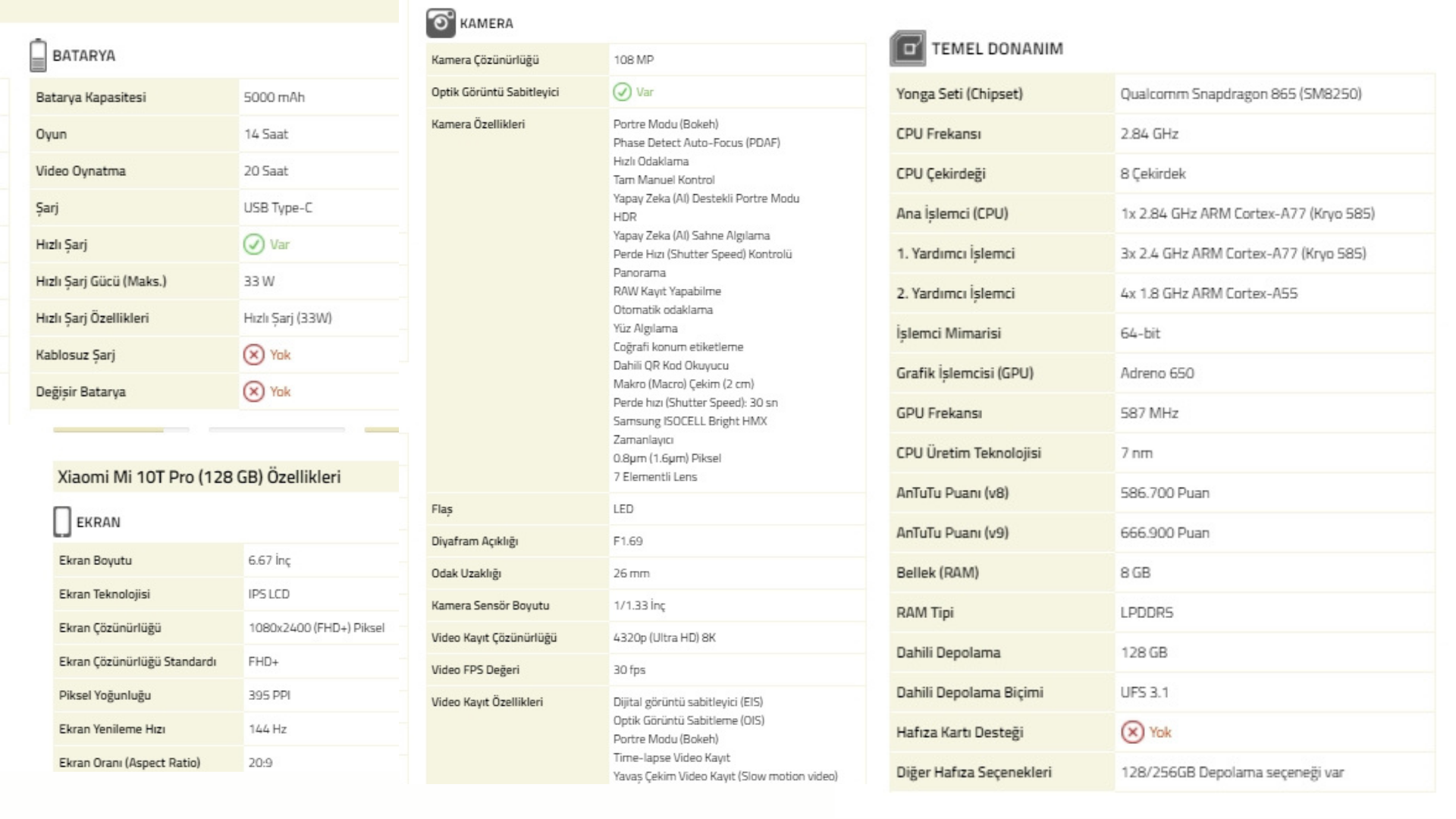 Merhaba forum, 1-2 ay içinde yeni telefon alacağım. 2 telefon arasında kararsız kaldım. İşim sosyal medya Türkiye'yi ve dünyayı gezip fotoğraf çekmek, kameralar var fakat geniş açı çeken bir telefon istiyorum. Siz ne öneriyorsunuz? ( Xiaomi Mi 10t Pro özelliklerine aşağıda ki görsellerden bakabilirsiniz)