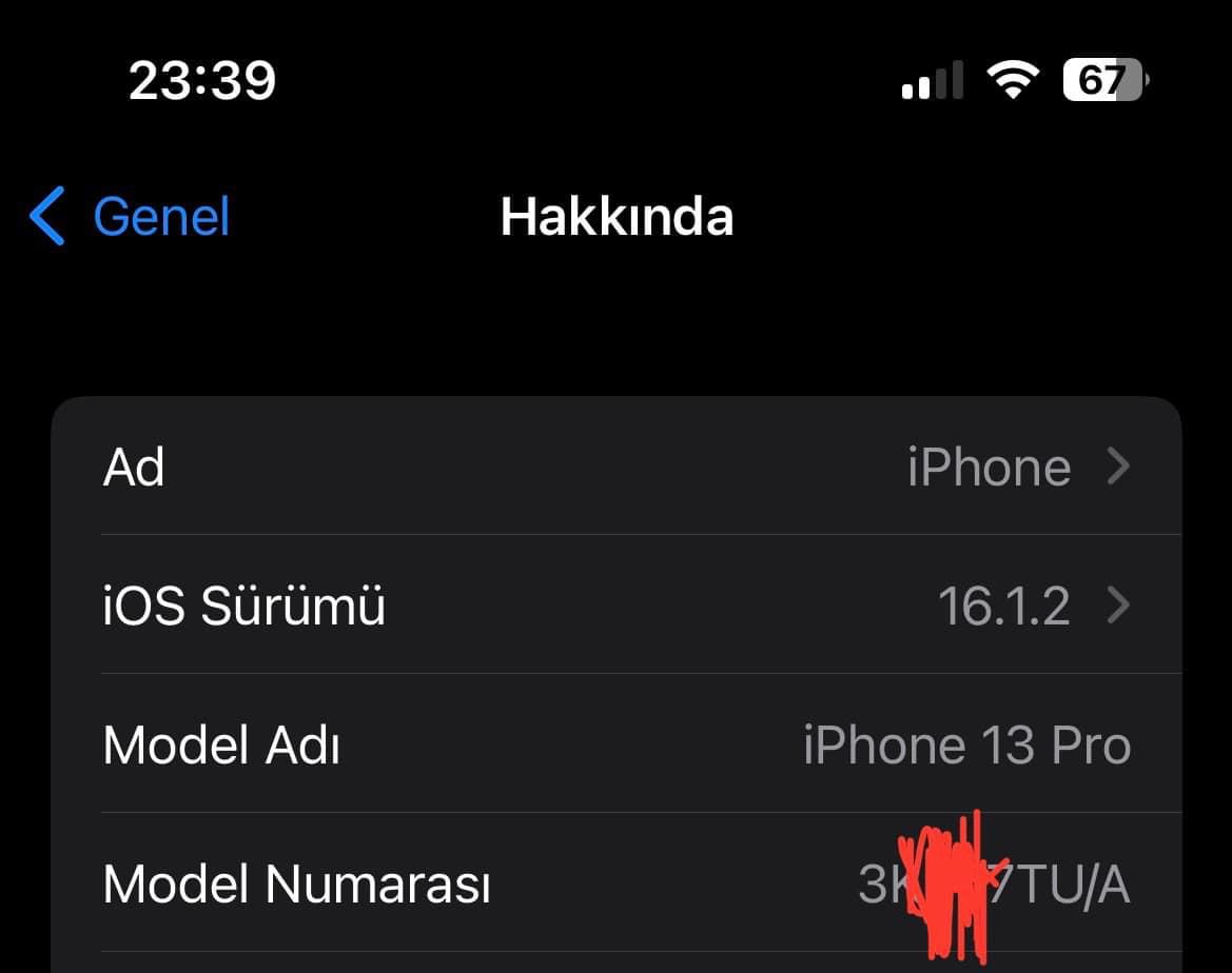 Arkadaşlar merhaba iki şey sormak istiyorum. İlki bir cihaz aldım 13 Pro model numarası aşağıdaki gibi 3 ile başlıyor. Sonu TU/A ile bitiyor. Dokunduğumda A2638 yazıyor. Seri numarasından sorguladığım zaman Apple sitesinde görünüyor bir sıkıntı yok fakat herkes model numarası m ile başlamalı dediği için sormak istedim. M ile başlamıyor 3 ile başlıyor fark nedir?
