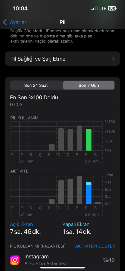 iPhone 13 aldım, cihaz daha 4-5 günlük ama şarjı çok hızlı bitiyormuş gibi hissediyorum. %100 şarj ile 5-6 saat kullanabiliyorum. Fotoğrafları aşağıya bıraktım.