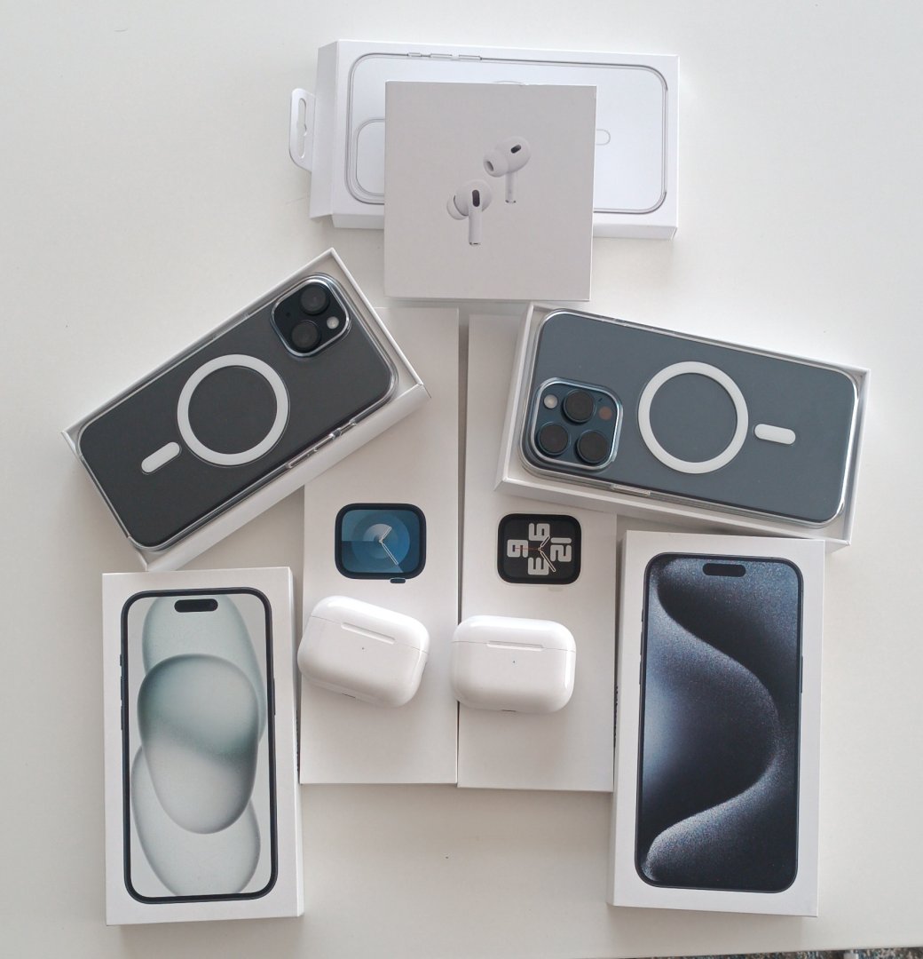Vatan bilgisayar mağazasından 1tane 15 pm 512, 1 tane 15 256, 1 tane Watch 9, 1 tane Watch se, 2 tane airpods pro 2 (telefonlara 3er yıl kasko yaptırdım) kılıf koruyucular vs. toplam 215k ya geldi
