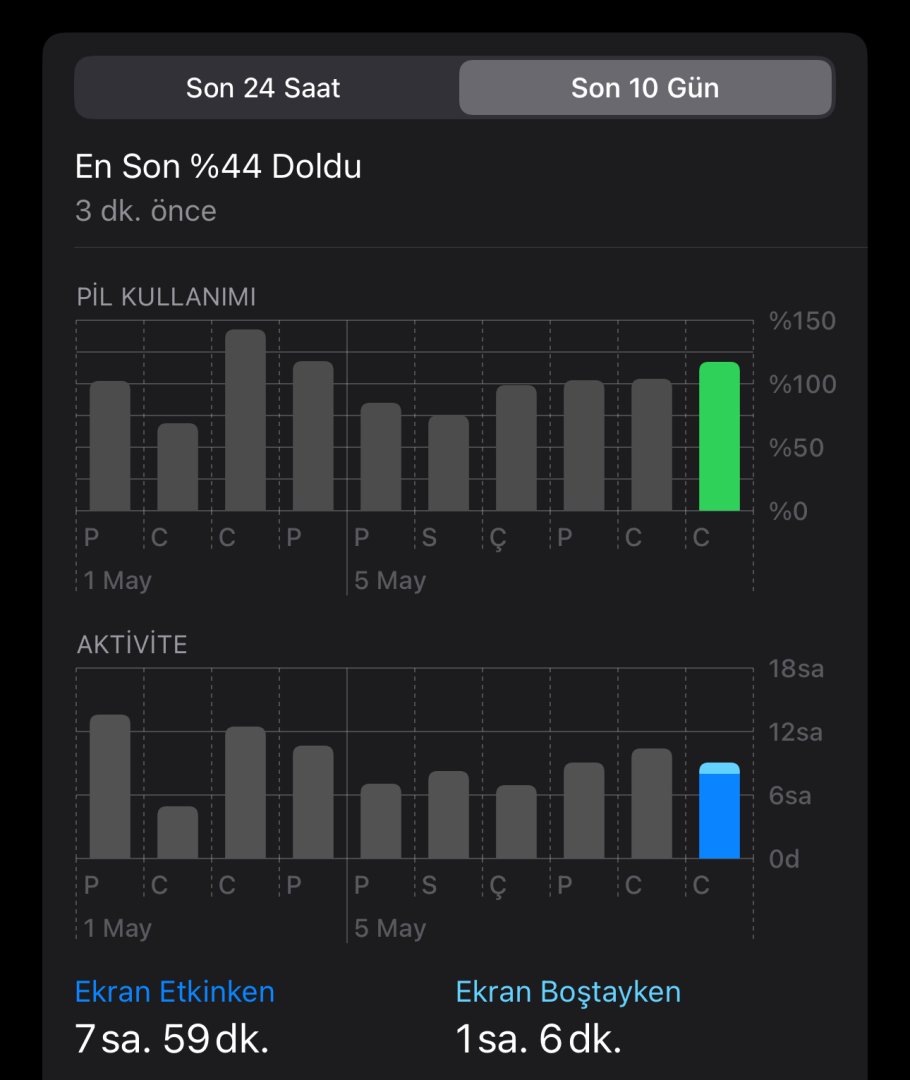 Ayarlar>Pil kısmından Son X gün seçeneğini seçip son sütuna tıklayıp SS atabilir misiniz?3 gün önce telefonu aldım 4-5 saat bakıyorum şarj bitiyor normal midir?