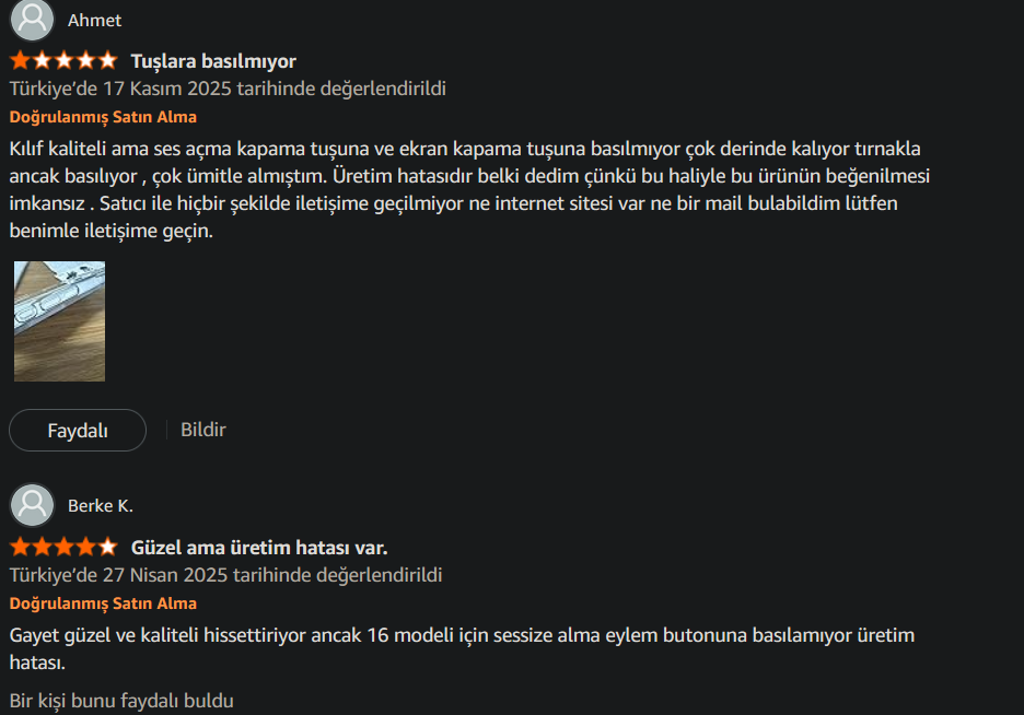 Bu dedikleri eylem butonuna tırnağınız ile basabiliyorsunuz ben herhangi bir sorun yaşamadım zaten çok kullanılan bir tuş değil. Kılıfın kalitesi çok iyi o yüzden önerebilirim yani.