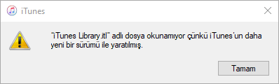 Bilgisayarınızdaki müzikler klasörüne girin ardından iTunes klasörüne tıklayın daha sonra oradaki iTunes Library.itl dosyasını silin. Sonra tekrar girmeyi deneyin.
