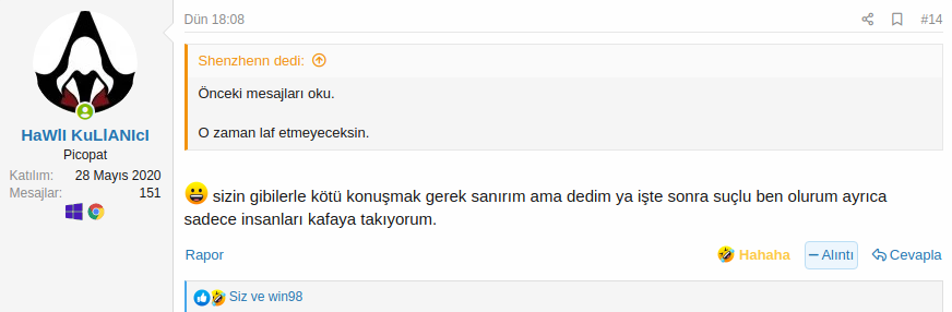 Muhtemelen daha fazla tartışma gerekli değildir ki bu durumda yeni bir konu başlatmayı öneririz. Eğer yine de cevabınızın gerekli olduğunu düşünüyorsanız buna rağmen cevap verebilirsiniz.