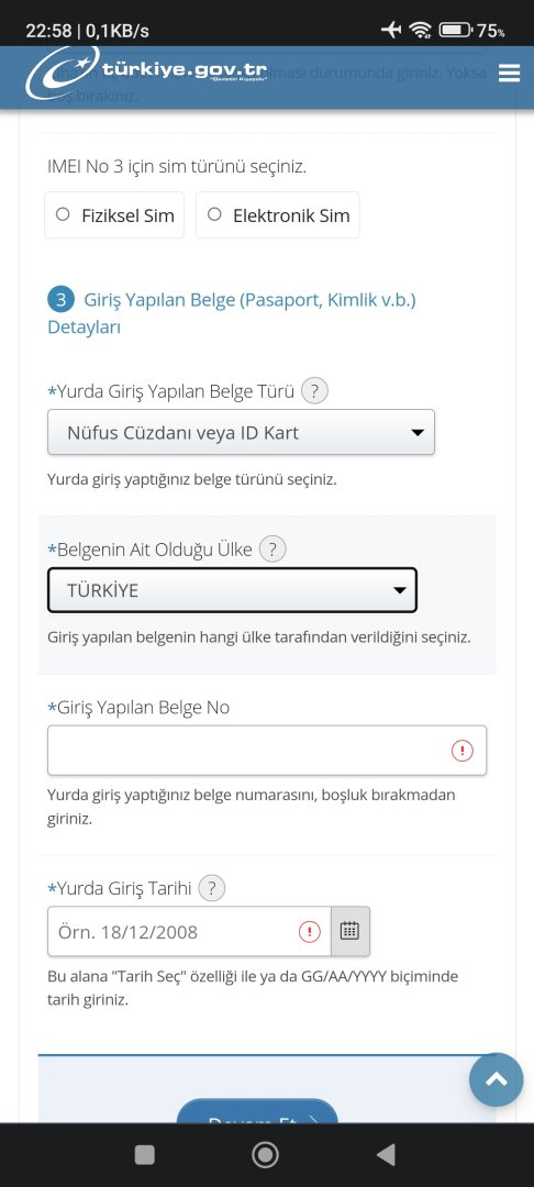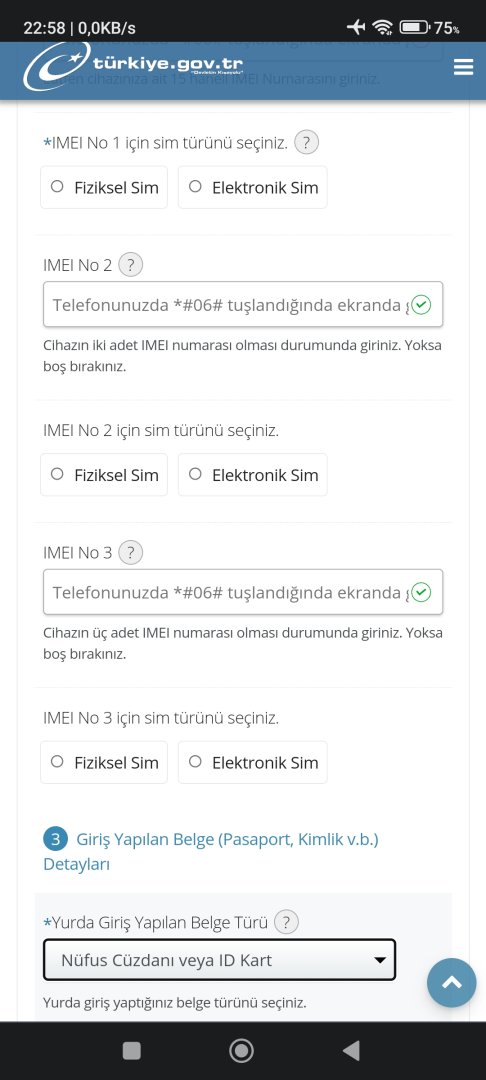 Yukarıdaki bilgileri doldurduktan sonra IMEI no yazan kısma tek IMEI yazmanız yeterli. IMEI 1 numaranızı yazın yeterli. Çift IMEI olması burada önemli değil. Çift IMEI'yi e-devlete kaydettik.