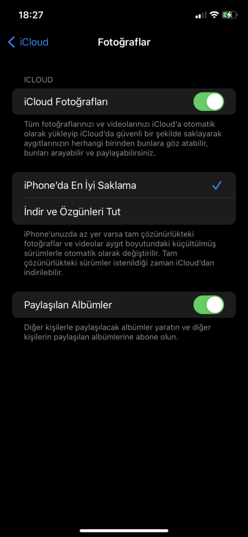IPhone'da en iyi saklamayı seçtiğiniz zaman orada yazdığı gibi fotoğraflarınız yer kaplamıyor. Galerinizde görmeye devam edebiliyorsunuz ve üzerlerinde istediğiniz işlemi yapabiliyorsunuz. Kısacası 128 GB modeline para vermenize gerek yok 64 GB modeli şu anda MediaMarkt gibi yerlerde 11.500TL gibi bir fiyata bulunabiliyor.