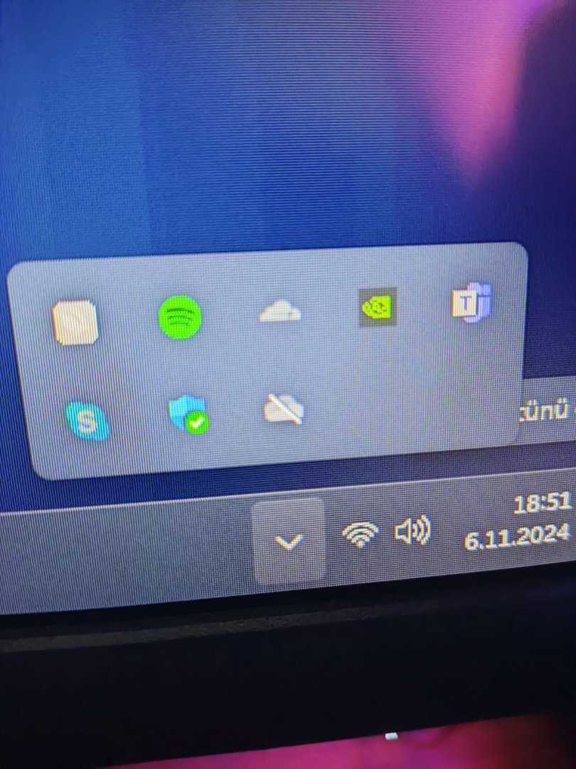 Öncelikle selamlar, geçenlerde ilk defa laptoptan masaüstü bilgisayara geçtim ve dolayısıyla yeni bir monitör aldım fakat monitörün görüntüsü benim gözüme değişik geliyor. Örneğin yazılar çok keskin görüntü 1080 gibi hissettirmiyor 720p gibi sanki ayarlardan ölçeklemeyi %125 yapınca sorun çözülüyor. 15.6 laptop ekranından 24 inç monitöre geçtiğim için mi böyle yoksa gerçekten bir sorun mu var? Bazen uygulama logoları da bulanık. Aşağıda fotoğraf koyduğum sistem tepsisindeki NVIDIA logosu gibi ve bir de bu durum monitörün ayarlarındada geçerli yardımcı olursanız sevinirim. Monitörün MSI G2412F 1080p Full HD oyunlarda daha denemedim bir de ekrana çok yaklaşınca böyle pixeller gözüküyor ama o normal herhalde.