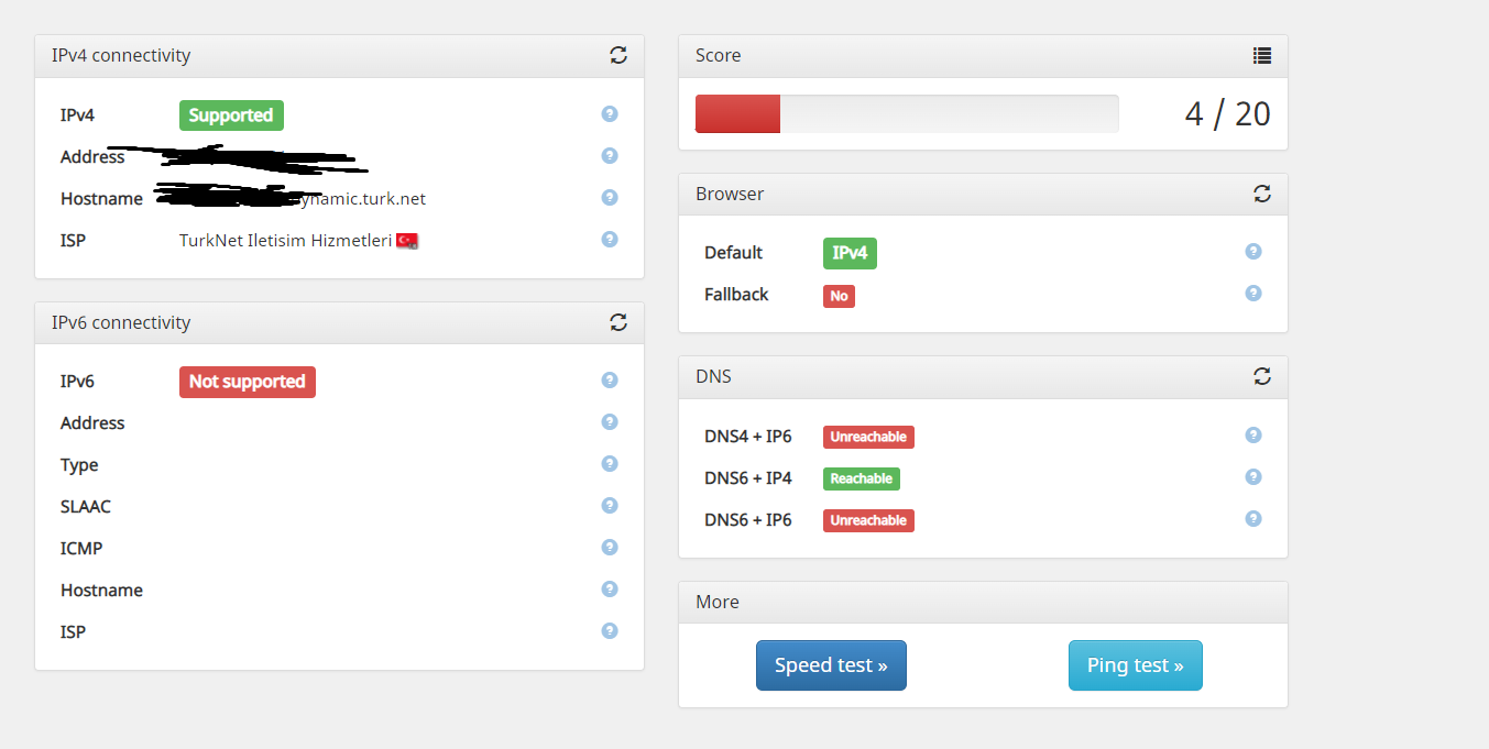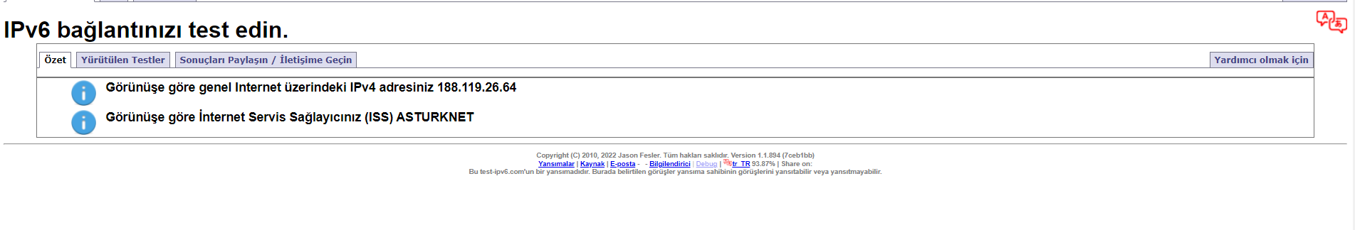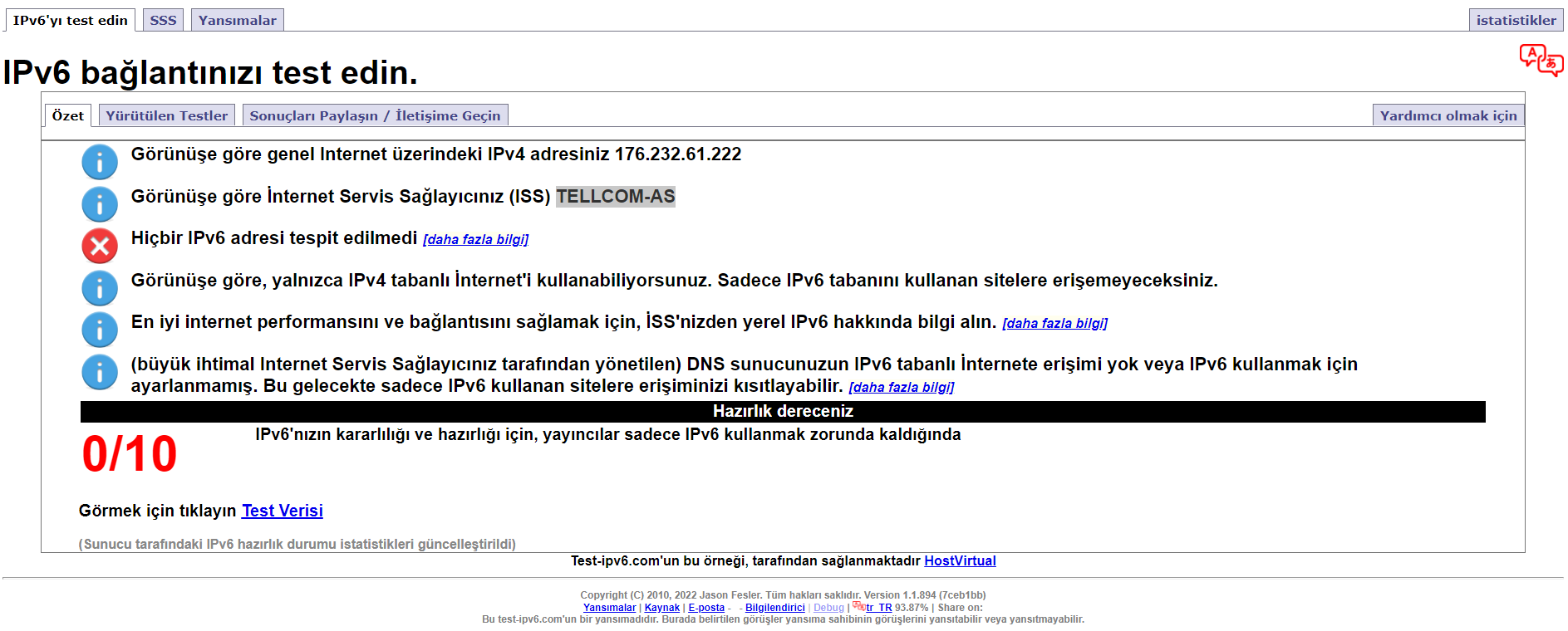 Modemi yeniden başlattım fakat test yaptığımda ise IPv6 yok gözüküyor fakat modem arayüzünde IPv6 var gözüküyor bu sorunun sebebi nedir?