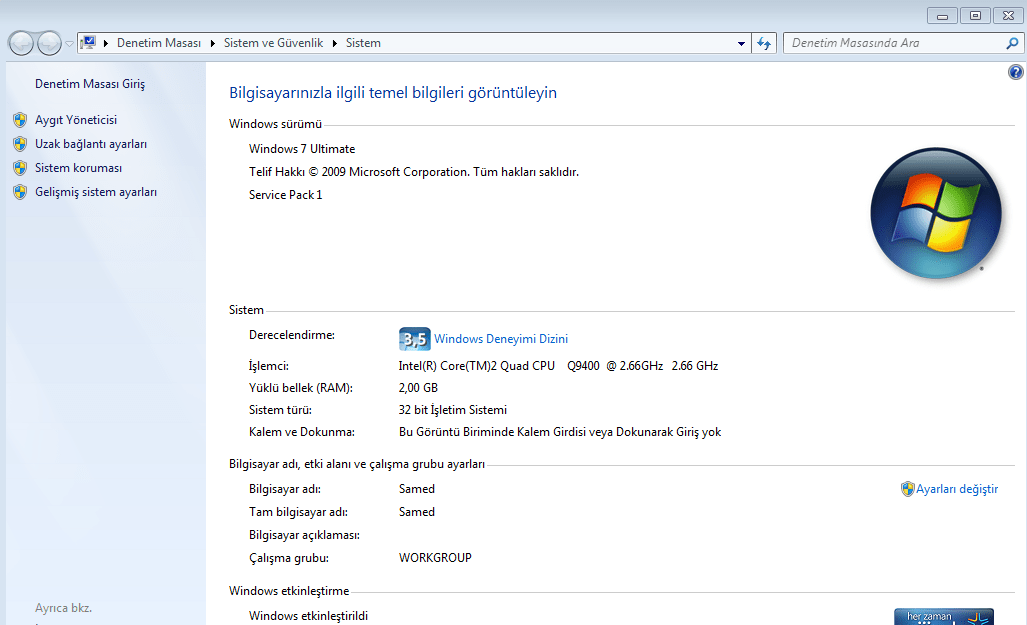 SSD falan bilmiyorum beni mazur görün. Sistem fotoğrafım şu RAM'ı 4 GB yapacağım kargoda geliyor.