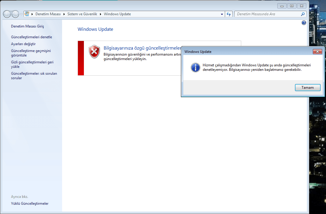 Beni bilgilendirdiğiniz için teşekkür ederim.Windows update açılmıyor o sorunun çözümünü biliyor musunuz? Fotoğrafını atmıştım