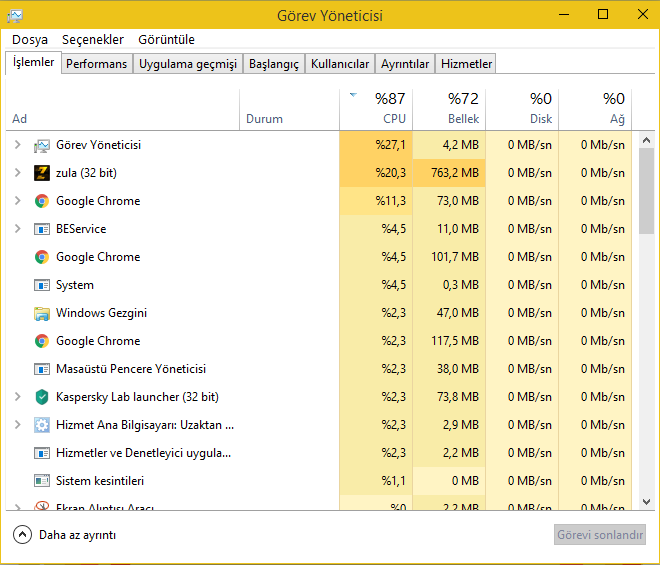 Hayır. Ne yaparsam %87 üzeri görmüyor. Gerekirse 5 tane Zula açayım yine aynı.Demek ki işlemcin Zula için kendisinin %87'sini kullanması yeterli. Sen masada duran telefonunu masadan alırken tüm gücünle mi alıyorsun yoksa yetecek kadar güç mü kullanıyorsun? Öyle düşün.