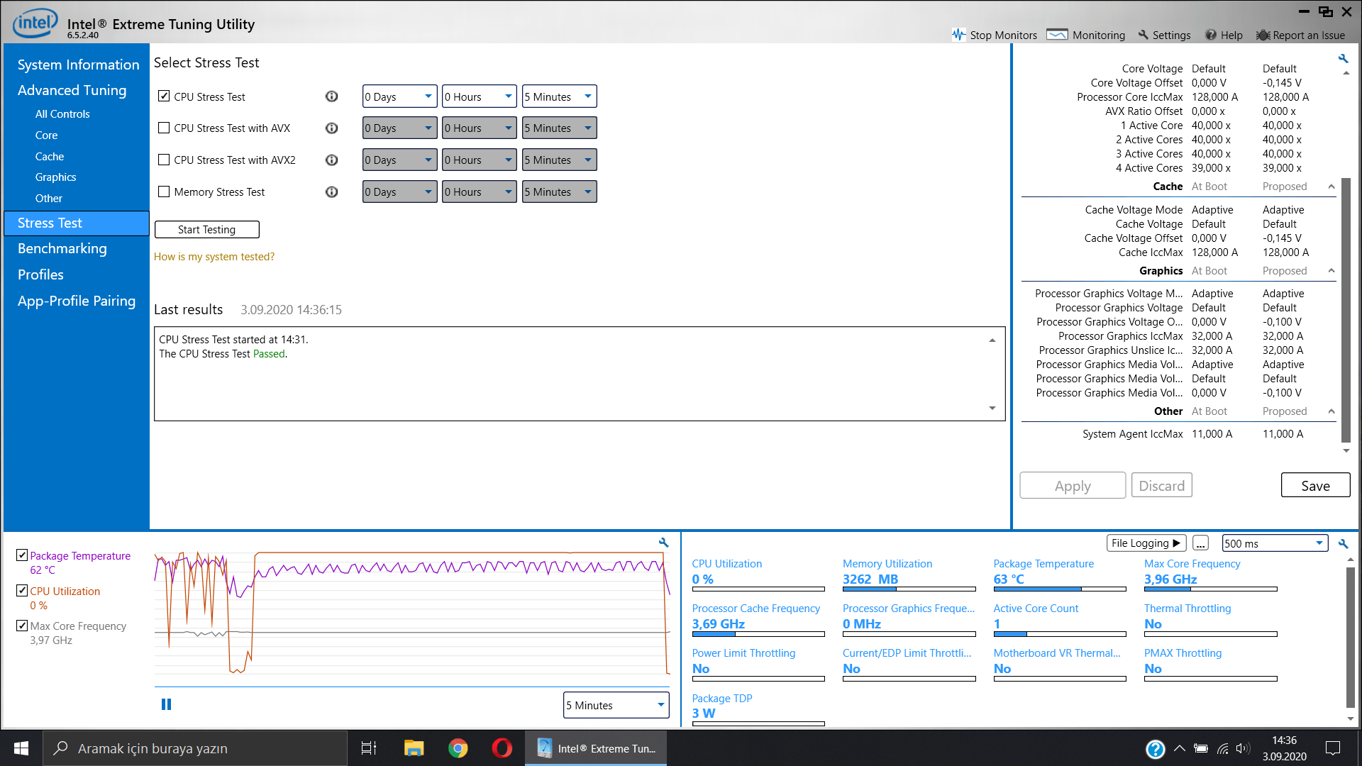 HP Pavilion 15 bilgisayarıma işlemci çok fazla ısındığı için undervolt yaptım. İşlemci için -150MV grafik birimi için -100MV ve TDP değerini 90'dan 42 Watt'a çektim.
