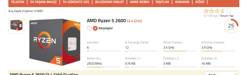Aşağıda gördüğünüz R5 2600 benim işlemcim ve teknik verilerinde bellek hızı olarak 2933 gözüküyor.