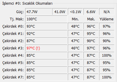 Laptopumun işlemcisini CPU-Z'den stress test yaptığmda 12 çekirdekli işlemcimin 11 çekirdeği 85'te kalırken 3. çekirden 90 100 dereceleri görüyor ve yanında (!) böyle bir işaret var.