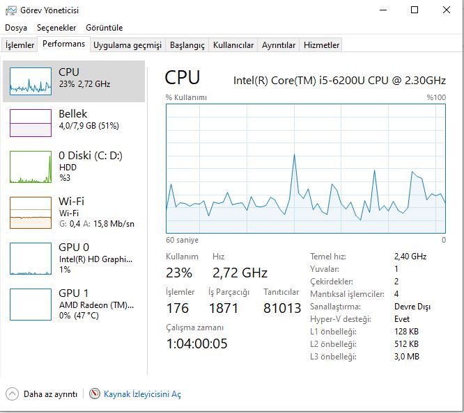 Hepinize iyi günler. Bugün görev yöneticisinden işlemciye baktığımda 1 günden fazla bir süre boyunca çalıştığını fark ettim. Bunun, hızlı başlat ayarının açık olmasından olduğunu düşünüyorum. Bunun böyle olmasının bir zararı var mıdır?