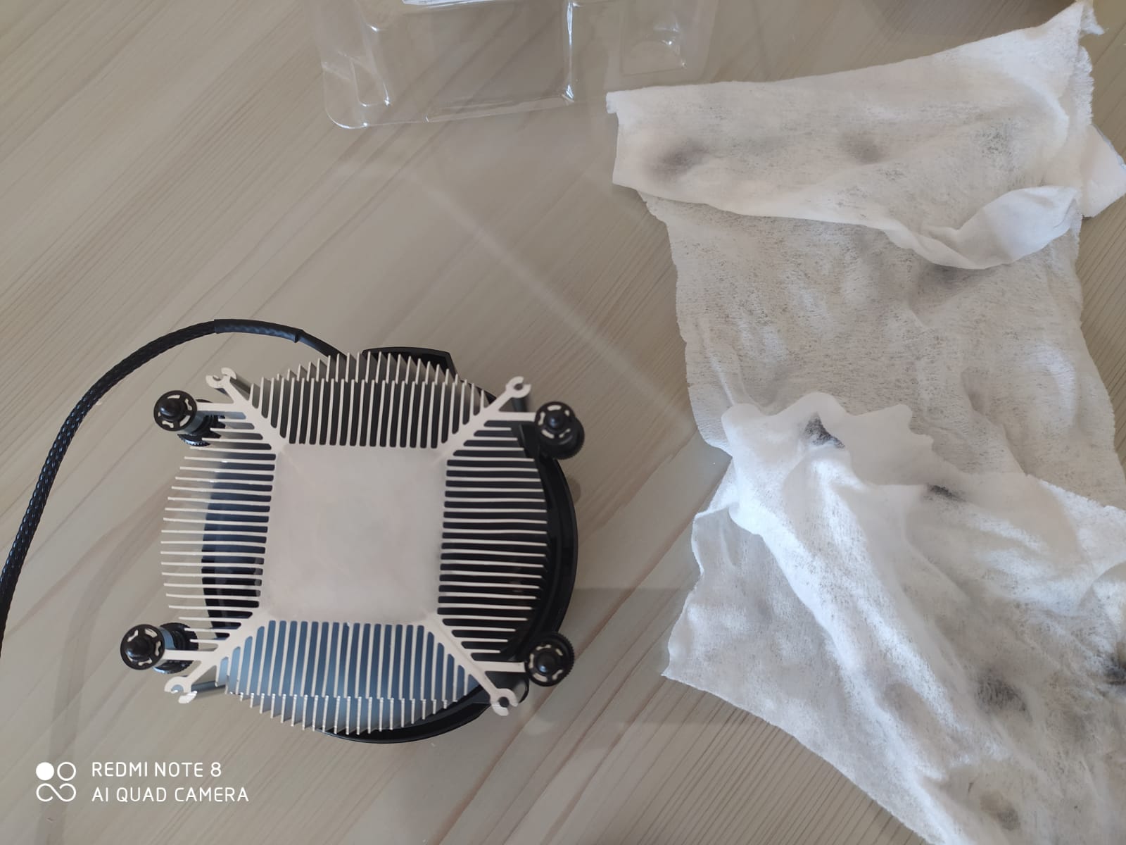 İşlemcinin fanını silerken, macunu temizledim ama sildikçe, ıslak mendile siyahlaşıyor. Soğutucunu macun sürülen bölgesinde öyle.(Ürünü İncehesap firmasının yapmış olduğu "Gaming Cuma Gecesi" adlı indirim gününde aldım.)
