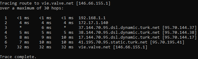 Bu arada; TTNET'teki aboneliğizi iptal etmeden direkt olarak geçiş sağlarsanız port kaybı da yaşamazsınız, bilginiz olsun.@Ew1rhan TürkNet Türkiye'de CS:GO'ya tek düzgün bağlantı sağlayan firma. Direkt olarak kendileri bağlıyor yurtdışında ki herhangi bir ISS devreye girmiyor. Aşağıdaki tracert sonuçu @Rootsy Aittir.