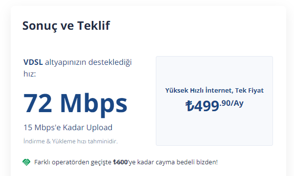 Merhaba, şu an kullandığım paket Türk Telekom ve 36 Mbps (470TL). Altyapı sorguladığımda bazı siteler 72 Mbps destekleyen VDSL altyapınız var diyor bazıları ise 10 Mbps destekleyen ADSL var diyor ama ben 36 Mbps alabiliyorum. Daha yüksek hız, uygun fiyatlı, sorun çıkarmayacak alabileceğim operatör önerebilir misiniz?