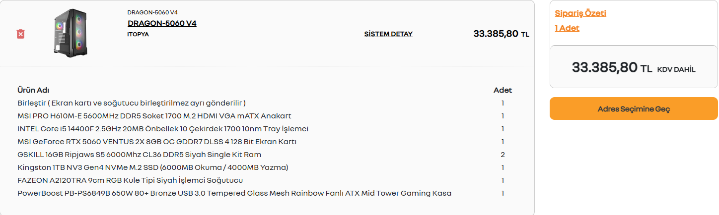Sistemi özelleştirerek bu hale getirdim. Sizce bu fiyata değer mi? Maksimum bütçem 30 bin TL taş çatlasa 32-33 bin TL çıkabilirim.