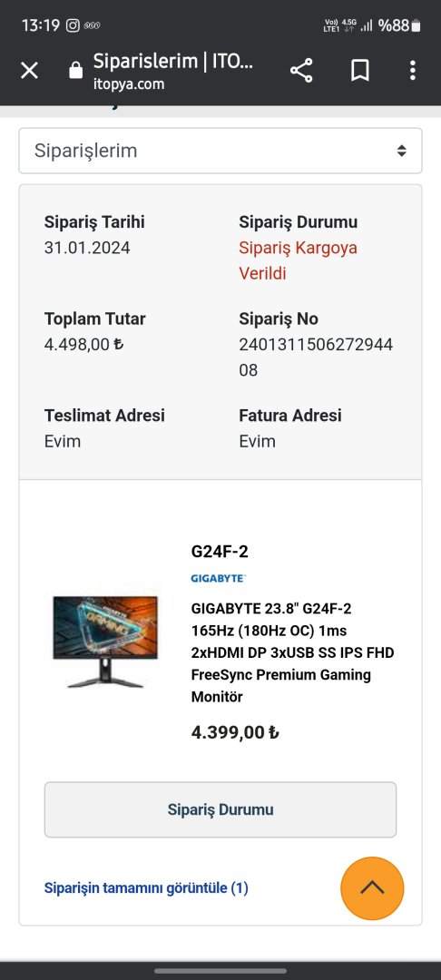 Ömer404 dedi: Kargo takip numarasına nereden bakacagımı bulamadım. Yardımcı olur musunuz? Eki Görüntüle 2104101 Genişletmek için tıkla... Aldığın iyi olmuş bende bundan kullanıyorum.
