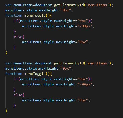 Arkadaşlar merhaba. Tasarladığım web sitesinde ana sayfada sliderlar oluşturmak istedim. Slider değiştikçe menü kısmı gelmediği için her fotoğrafa ayrı menü yapıp sorunu çözmüştüm. Daha sonra sayfayı responsive hale getirmek için Java kodlarını yazdım ama kod sadece tek slider için çalışıyor. Bir fotoğrafta menü iconuna basınca altta başlıklar açılıyor. Diğerlerinde olmuyor. Tüm sliderlara uygulatamıyorum. Yazılımda yeniyim. İnternette arattım ama çözüm bulamadım. Kodların fotoğrafını yükledim. Yardımcı olabilir misiniz?