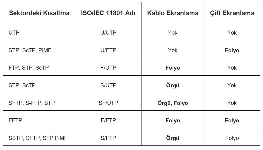 Utp kablo türünde herhangi bir koruma (plastik, folyo vesaire) bulunmamakta.