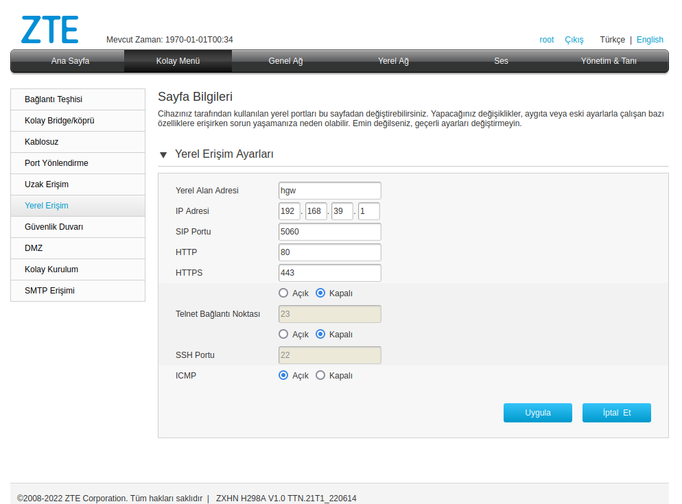 Not: Wi-Fi isim ve şifre değiştirmek istiyorsanız kolay menü altındaki kablosuz menüsünden değiştirebilirsiniz.