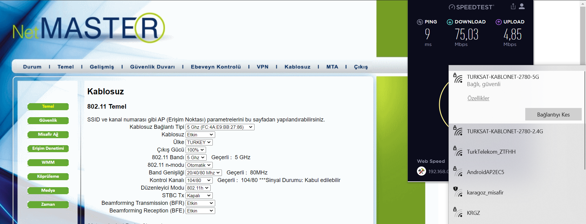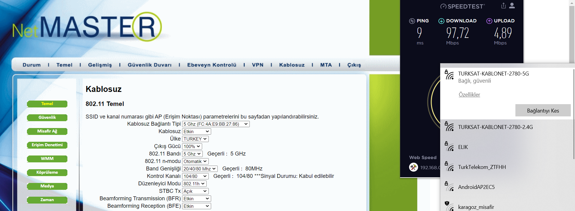 Değil 5GHz'de benim çok az hız düşüyor evim 4+1 ve bayağı büyük evin bir köşesinden bir köşesine 89 Mbps hız alıyoerum değişiyor bazen 92 oluyor 5 GHz de 35'lere düşmemesi lazım.