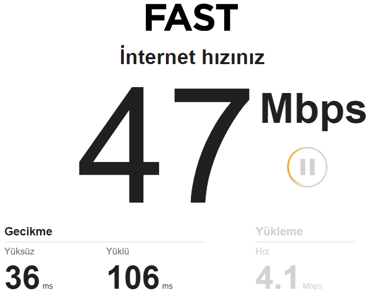 ethernet kablosu ile değil mi ? Şu an kablo yok bende gidip alıcam,cat6 alırım öyle önermişler sitedeKablolu yapmanızı oneririm ve spped test sitesi iyidir.
