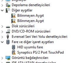 Aygıt yöneticisinde bilinmeyen aygıt var mı?