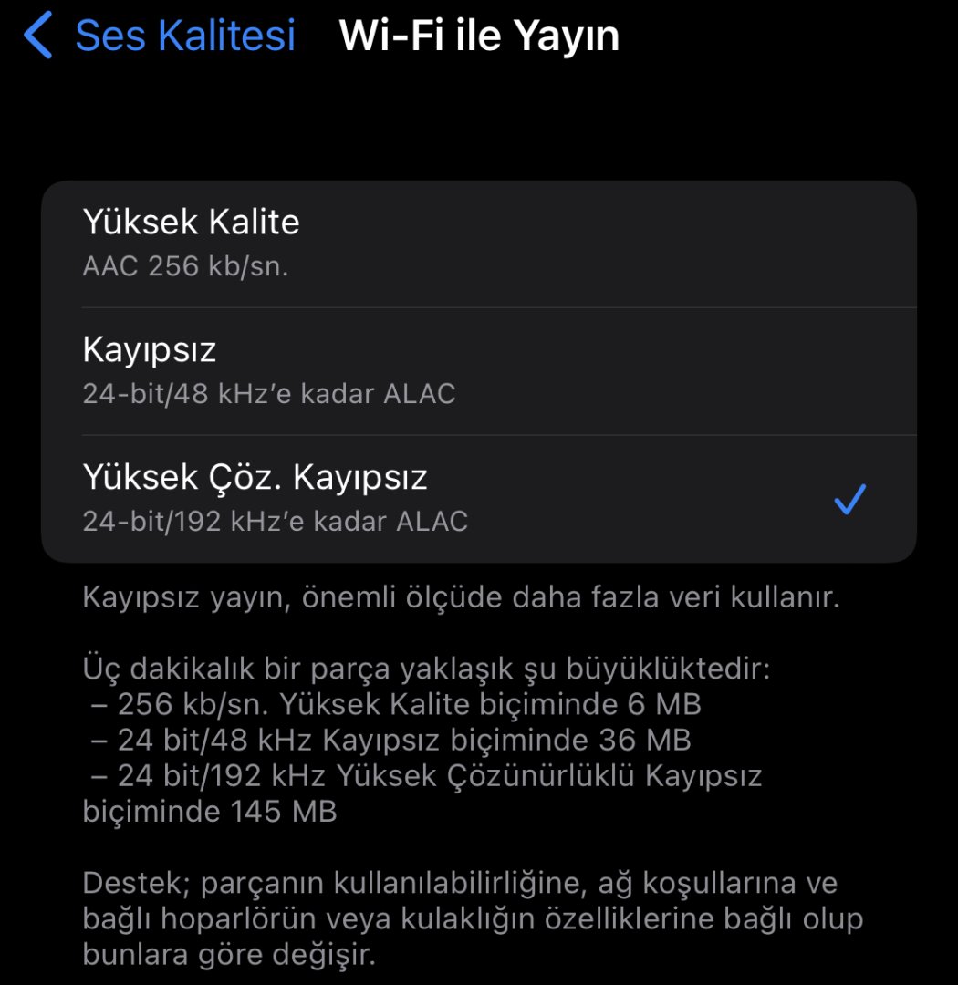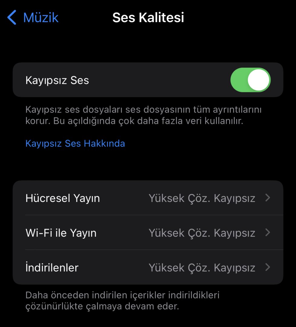 Merhaba iPhone ve Apple müzik kullanıyorum yüksek çöz. kayıpsız müzik dinliyorum daha doğrusu dinlemeye çalışıyorum