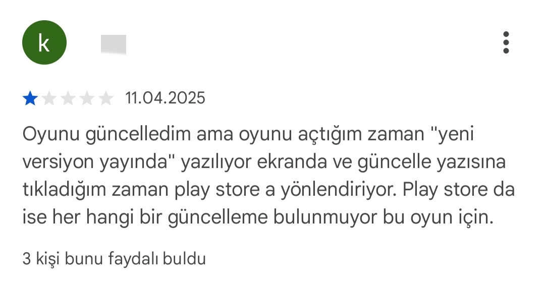 Dünden beri oyuna girdiğimde güncelleme var uyarısını verip Play Store'ye atıyor ama oyunda güncelleme yok. Neden böyle oluyor?