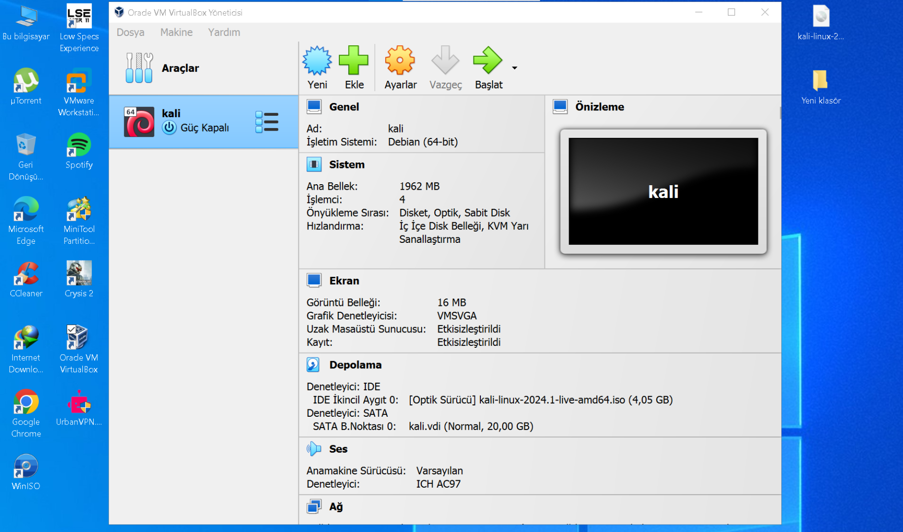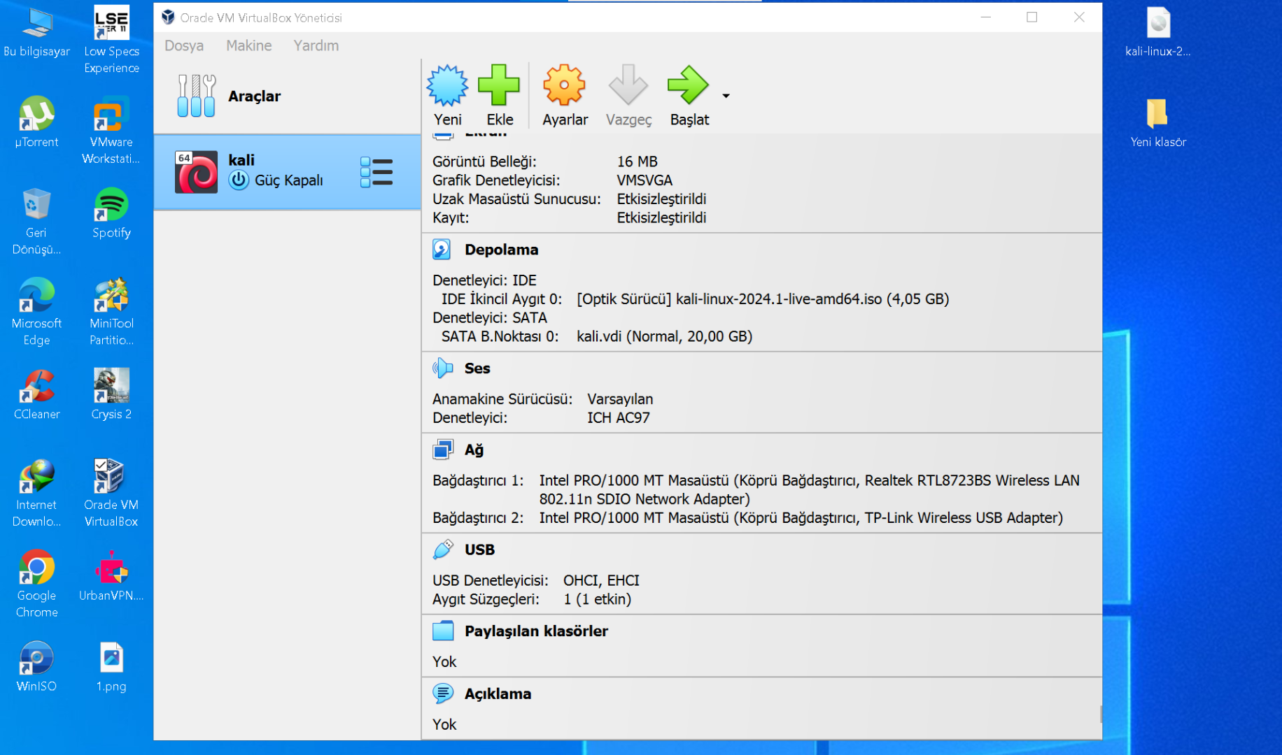 Windows 10 PC'ye, Kali'yi ve VirtualBox'u sıfırdan yükledim ve zor da olsa Kali'yi kurabildim ama bu sorunla karşılaşıyorum yardım edin.