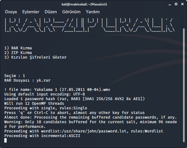 6-Terminalde rar şifremi bulmaya çalışyıroum ve beyaz imleç öylece duruyor ama CPU yüzde yüz bundan doalyı çalışıyor sanıyorum. Ama bunun yerine bir işlemimmin çalıştığını gösteren bir şey bulabilir miyim top haricinde hiçbir belriti yokta.