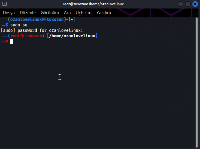 sudo su diyerek root olalim.