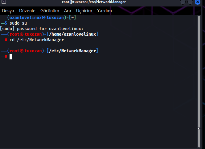 cd /etc/NetworkManager/ diyerek networkmanager'a baglanalim.