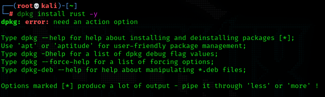 Kali Linux en son sürümü/en son güncellemeler yüklü ama hiçbir paket dosyasını pkg komutu ile yükleyemiyorum. Sistemde pkg komutu yok ve işin kötü tarafı kurmam gereken şeyi zorunlu olarak pkg komutu ile kurmam lazım.