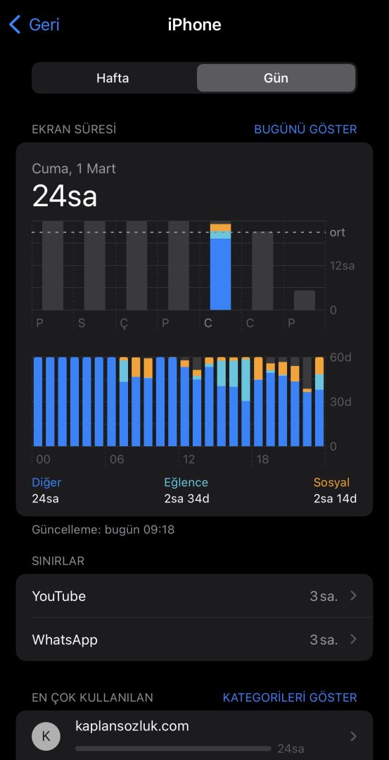 Arkadaşlar hayatımda sadece bir kez borsa kaplanı sözlüğüne girdim, ki o da ne olduğunu anlamak içindi. Ardından bir dakika bile durmadan çıktım. Sonra bugün geçtiğimiz haftanın ekran süresine bir baktım neredeyse her gün 24 saat açık kalmış. Bunun nedeni ne olabilir?