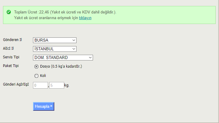 UPS sitesinden hesapladım. Bursa İstanbul arası 22TL gözüküyor.