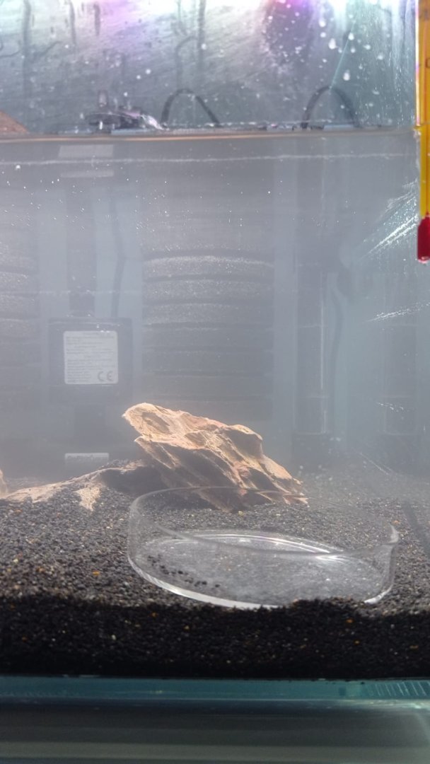 Tasarım ve dekorasyon: dragonstone kayası, kızılağaç kozalağı, petri kabı, bambu saklanma alanı, sera Precision akvaryum cam termometre.
