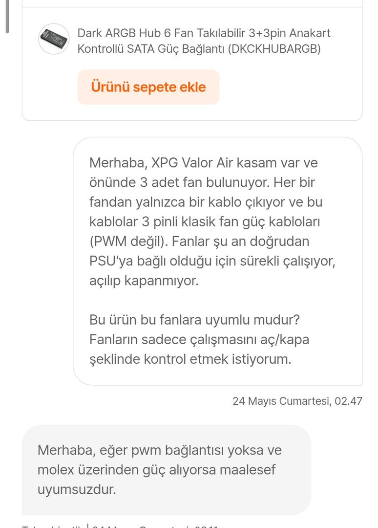 Dostum satıcıya sormuştum böyle bir cevap geldi, yani uyumlu olmazmış. Başka bir tane buldum 3 pinli kontrolcü. Görseli atıyorum. Benim PSU'dan gelen bir kaç kablo var. Tek merak ettiğim bunun girişi ile benim PSU'dan gelen 4 delikli dişi başlık uyumlu olur mu? Şimdi onu sordum. Sanada sormak istedim. Eğer olursa bunu alıp takacağım ama bir şekilde bu aparatı kasanın dışına kolay ulaşabileceğin bir yere koymam gerekecek.