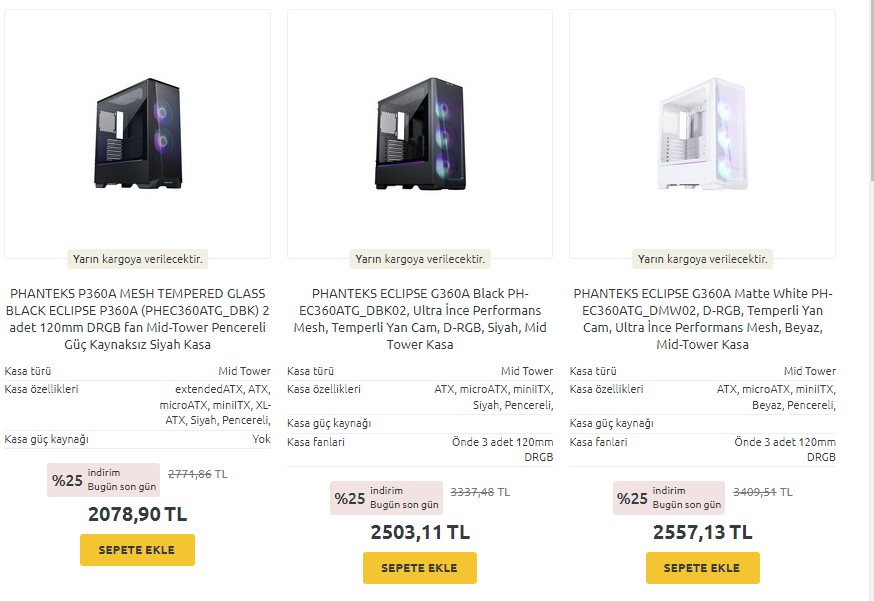 İnventus Phanteks kasalara güzel indirim yapmış. Bugün son gün.