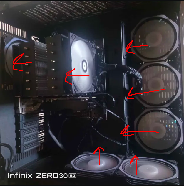 Arkadaşlar benim kasam aşağıdaki kasa fakat yanda 3 en altta 2 ve egzoz fan ile toplam 6 tane fan mevcut ve bu fanların hepsi havayı dışarı veriyor. İçeri hava almıyorlar hava akışı nasıl olmalı?