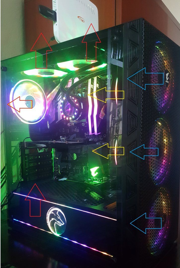 Rica etsem attığın fotoğraflardan paint ile doğru yönlerini göstererek yapabilir misiniz gerçekten anlam veremedim. Mesela üst fanlar içeriy emi üflemesi gerekiyor?