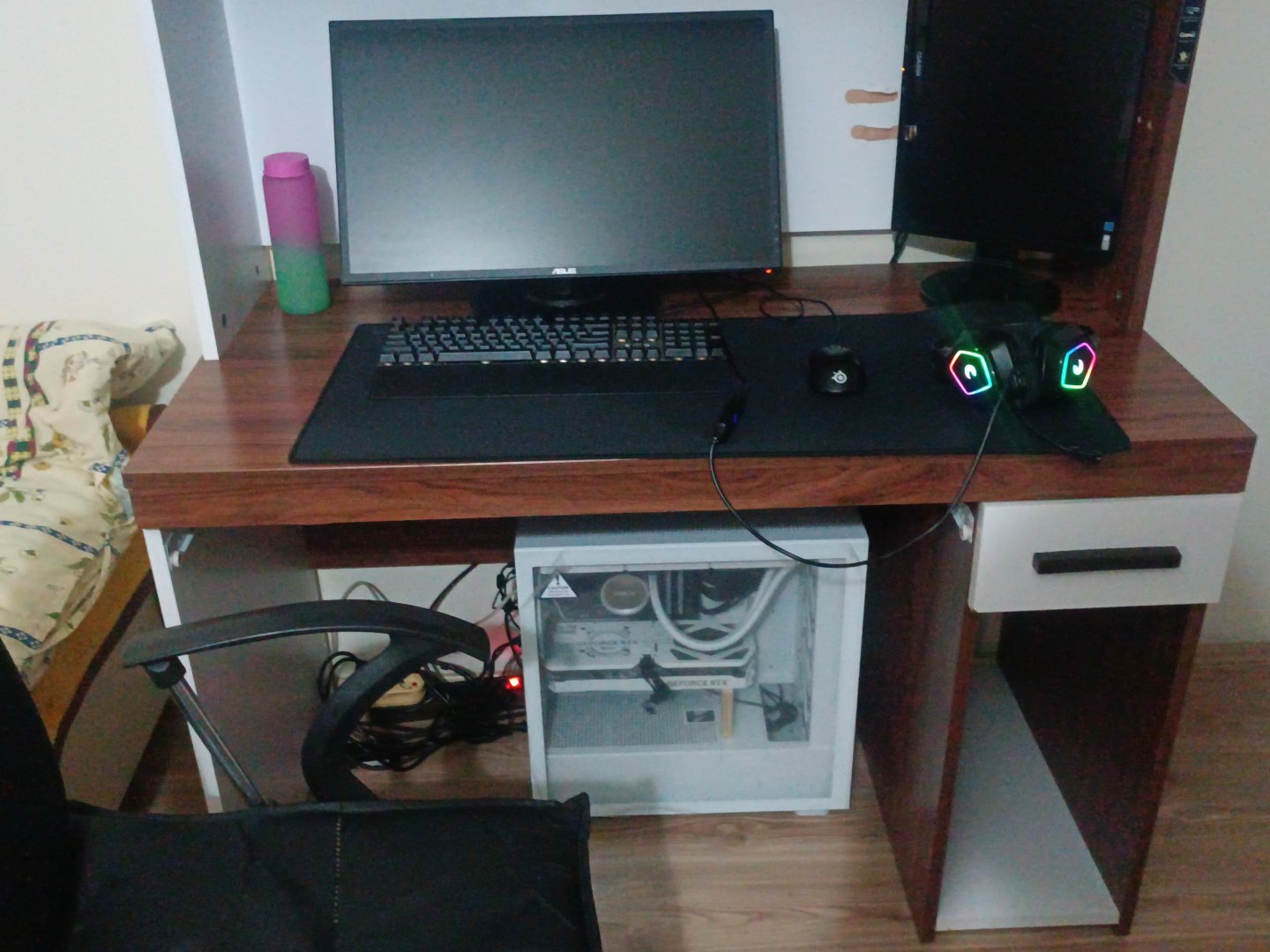 Ihlamur içiyordum masada. Yanlışlıkla elim çarptı ve yarısı döküldü. Monitörün arkasındaki aralığa da döküldü. Yerler ıslak, kasanın üstü de ıslaktı iyice. Sildim şu an. Kafama fazla takıyorum. Bir şey olmuş mudur? Yeni oldu. Bilgisayarı kapattım, 15 saat bekleyeceğim kurumasını.