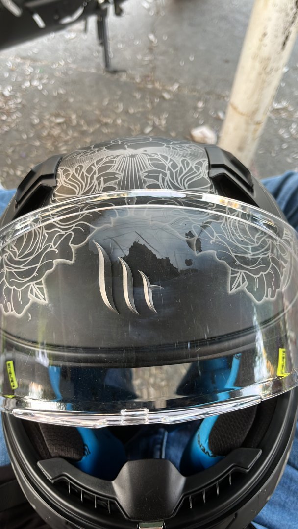 Çizik vizörde değil üzerindeki lekede (kazımayı denedim lekenin az bir yeri kalktı ama gerisi kalkmıyor), elimi sürtünce çıkıntılı geliyor leke olan yer, zaten bu kadar belirgin değildi aseton dökünce acayip belirgin oldu, iyi bilen birisine pasta cila çektirip deneyeyim en iyisi. Kask yeni daha 3-4 defa taktım, renkli vizöre para vermiyim diye başıma iş aldım..