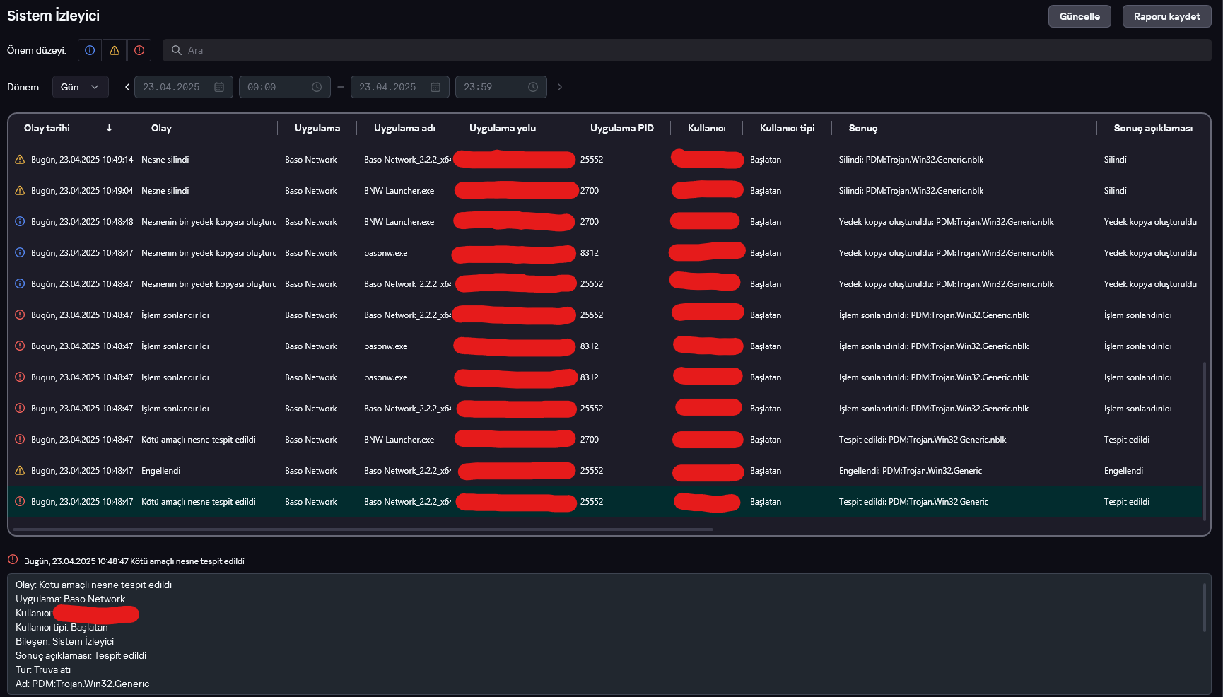 Baso Network Minecraft sunucusuna girmek için Launcher'i indirdim setup dosyasını açtım kurulumu yaptım. Sonrasında Launcher'i açtım ve Launcher birden kapanıp Kaspersky art arda bildirimler göndermeye başladı ve baso network Launcher'in bütün dosyalarını sildi. Sonrasında sistem izleyicisinden sebebe baktığımda truva atı olarak tespit ettiğini gördüm. Bu Launcher'i bir sürü kişi kullanıyor ve forumlara baktığımda birkaç kişi hariç yaşayan görmedim. Doğru siteden indirdiğime de eminim. Setup dosyasının VirusTotal sonucu bu şekilde: virustotal sonucu
